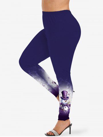 Plus Size Christmas Snowflake Snowman Flowers Ombre Colorblock Print Leggings - Concord - M