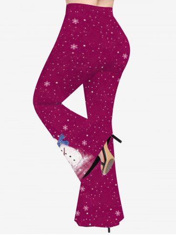 Plus Size Christmas Snowflake Snowman Galaxy Print Pull On Flare Pants - Deep Red - 4x