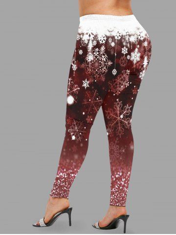 Plus Size Christmas Snowflake Tie Dye Colorblock Print Leggings - Brick Red - 6x