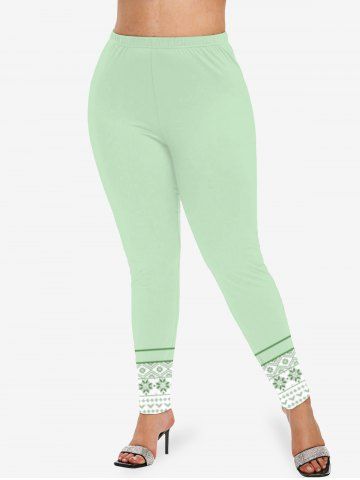Plus Size Christmas Snowflake Zig Zag Geometric Floral Print Leggings - Light Green - 4x