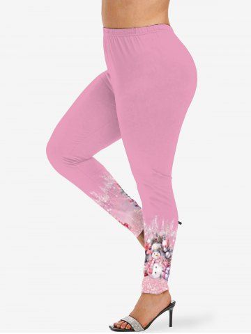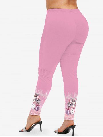 Plus Size Christmas Snowman Ball Gift Glitter Sparkling Paint Drop Print Leggings - Light Pink - 1x