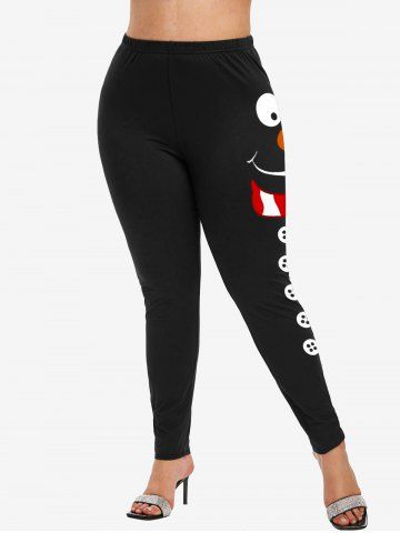 Plus Size Christmas Snowman Face Scarf Buttons Print Leggings - Black - 6x