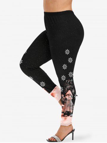 Plus Size Christmas Snowman Light Snowflake Colorblock Glitter 3D Print Leggings - Black - S