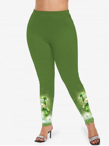 Plus Size Christmas Snowman Snowflake Flowers Print Leggings - Green - M