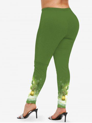 Plus Size Christmas Snowman Snowflake Flowers Print Leggings - Green - 5x