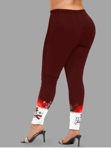 Plus Size Christmas Snowman Snowflake Ombre Colorblock Print Leggings - Deep Red - L