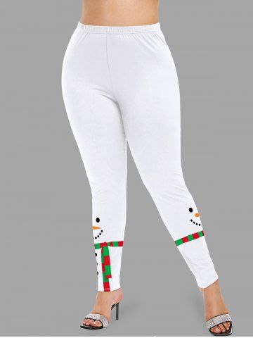 Plus Size Christmas Snowman Striped Scarf Print Leggings - White - 1x