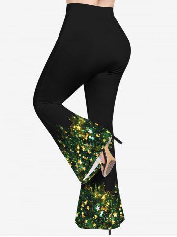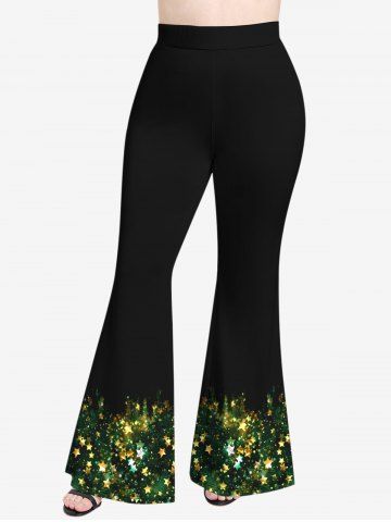 Plus Size Christmas Star Sparkling Sequin Glitter 3D Print Flare Pants - Black - M