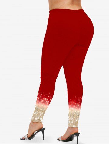 Plus Size Christmas Star Sparkling Sequin Glitter 3D Print Leggings - Red - S