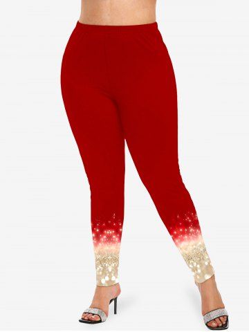 Plus Size Christmas Star Sparkling Sequin Glitter 3D Print Leggings - Red - 3x