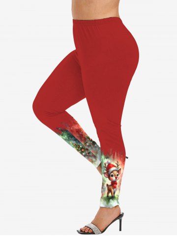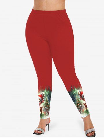 Plus Size Christmas Tree Ball Elk Hat Tie Dye Ombre Print Skinny Leggings - Red - 4x