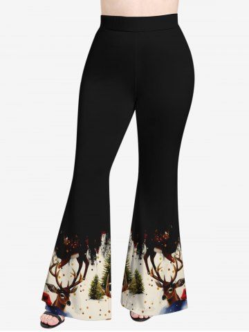 Plus Size Christmas Tree Ball Elk Snowflake Print Flare Pants - Black - 1x