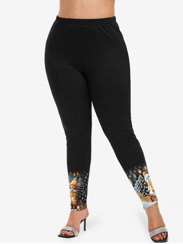 Plus Size Christmas Tree Ball Gift Snowman Elk Print Leggings - Black - S