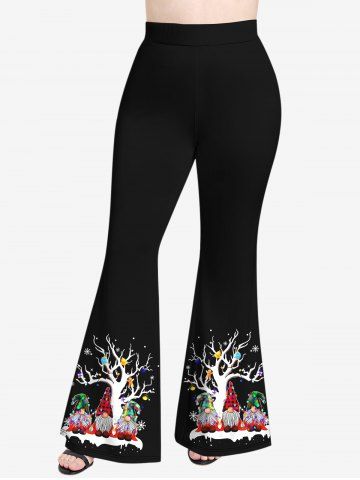 Plus Size Christmas Tree Ball Gingerbread Hat Dwarfs Snowflake Print Flare Pants - Black - L