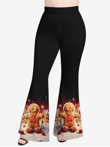 Plus Size Christmas Tree Ball Gingerbread Snowflake Colorblock Print Flare Pants - Black - L