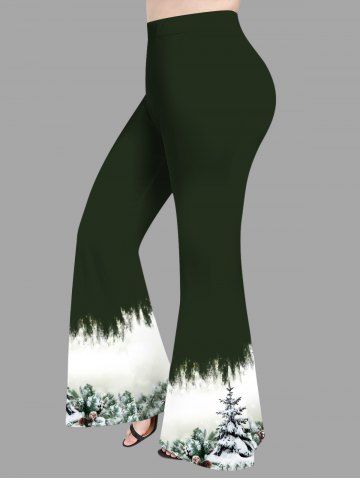 Plus Size Christmas Tree Ball Print Flare Pants - Black - 3x