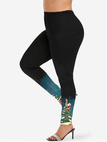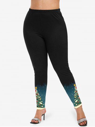 Plus Size Christmas Tree Ball Santa Claus Glitter Ombre Galaxy Print Skinny Leggings - Black - 4x