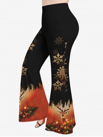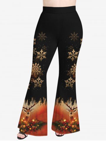 Plus Size Christmas Tree Ball Snowflake Elk Sparkling Sequin Glitter 3D Print Flare Pants - Black - L