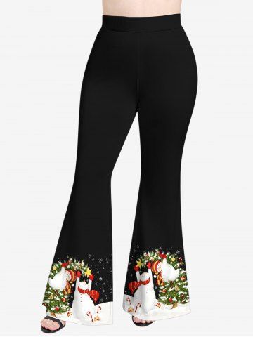 Plus Size Christmas Tree Ball Snowflake Snowman Candy Print Flare Pants - Black - Xs