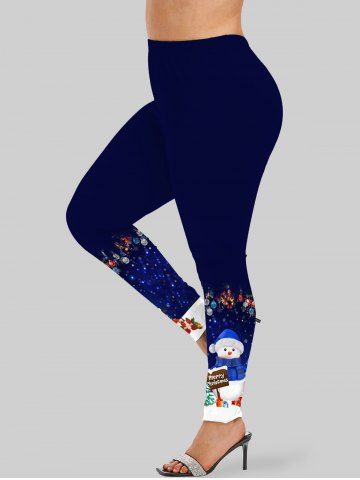 Plus Size Christmas Tree Ball Snowman Snowflake Colorblock Star Sparkling Sequin Glitter 3D Print Leggings - Deep Blue - 2x