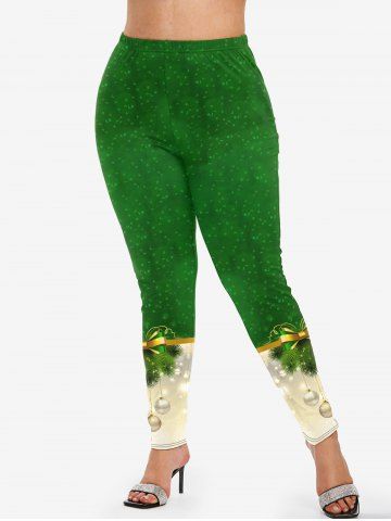 Plus Size Christmas Tree Bowknot Ball Print Leggings - Green - 2x | Us 18-20
