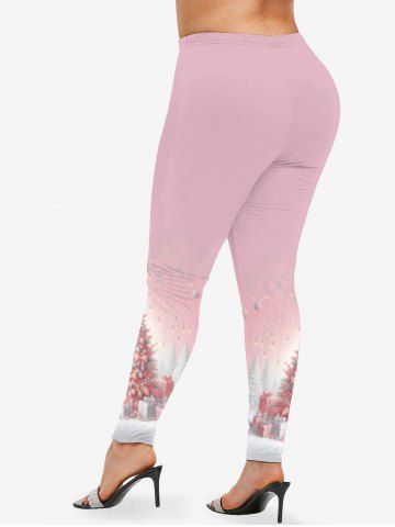 Plus Size Christmas Tree Bowknot Gift Box Light Tassel Print Leggings - Light Pink - L