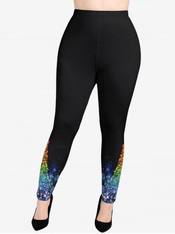 Plus Size Christmas Tree Bubble Star Sparkling Sequin Glitter 3D Print Leggings - Multi-a - M