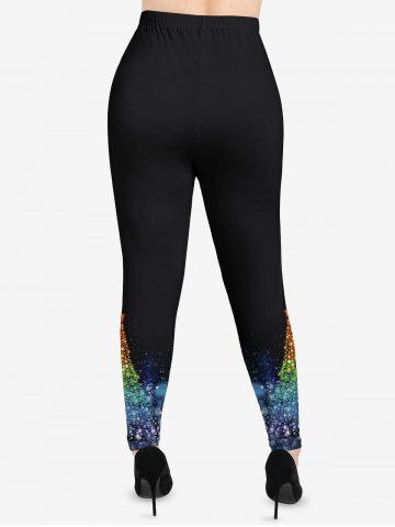 Plus Size Christmas Tree Bubble Star Sparkling Sequin Glitter 3D Print Leggings - Multi-a - 2x