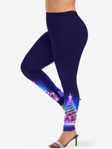 Plus Size Christmas Tree Elk Light Glitter 3D Print Leggings - Navy Blue - Xs
