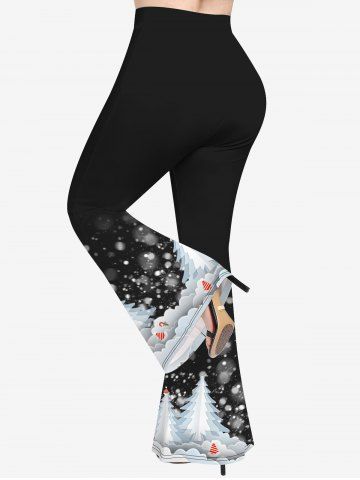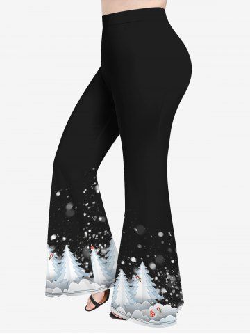 Plus Size Christmas Tree Hat Candy Snowflake Colorblock Print Flare Pants - Black - L