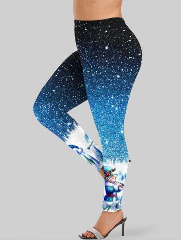 Plus Size Christmas Tree Hat Snowflake Ball Holly Glitter Sparkling Galaxy Elf Print Leggings - Blue - Xs