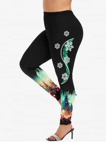Plus Size Christmas Tree Light Snowflake Sparkling Sequin Glitter 3D Print Leggings - Multi-a - S