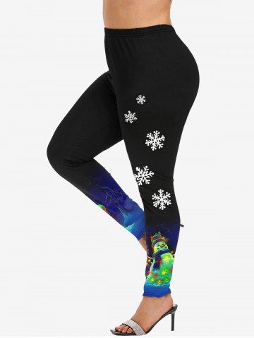 Plus Size Christmas Tree Light Snowman Snowflake Print Leggings - Deep Blue - M