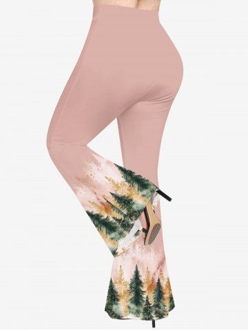 Plus Size Christmas Tree Print Ombre Flare Pants - Light Pink - S