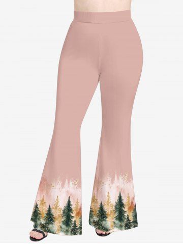 Plus Size Christmas Tree Print Ombre Flare Pants - Light Pink - 6x