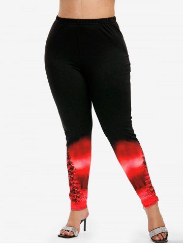 Plus Size Christmas Tree Print Ombre Leggings - Red - 2x | Us 18-20