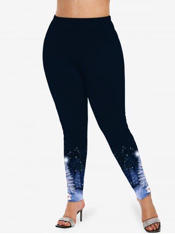 Plus Size Christmas Tree Rabbit Snowflake Star Glitter 3D Print Leggings - Midnight Blue - 6x