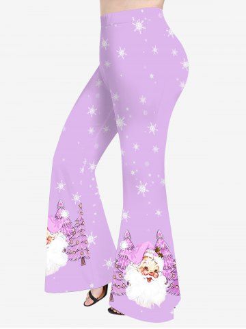 Plus Size Christmas Tree Santa Clause Snowflake Stars Print Flare Pants - Light Purple - Xs