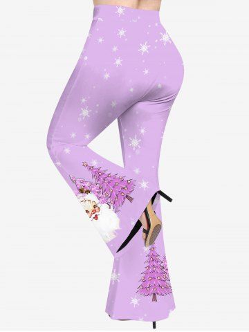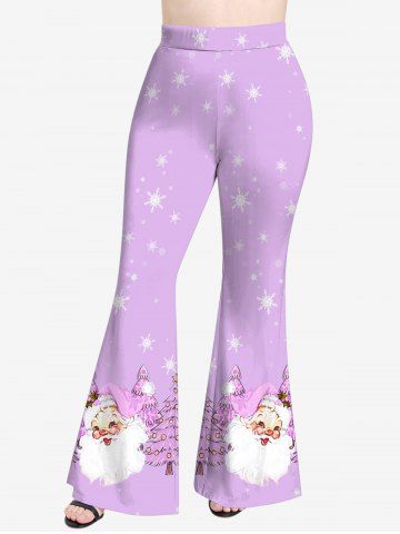 Plus Size Christmas Tree Santa Clause Snowflake Stars Print Flare Pants - Light Purple - 2x