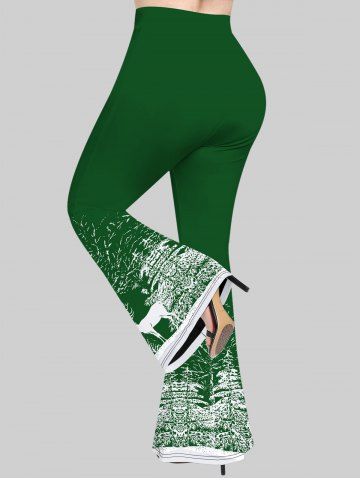 Plus Size Christmas Tree Snowflake Elk Print Pull On Flare Pants - Deep Green - 2x