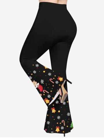 Plus Size Christmas Tree Snowflake Gingerbread Bell Stocking Candy Print Flare Pants - Black - 6x