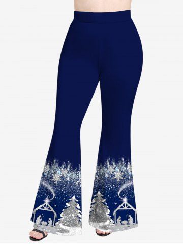 l*****s5Christmas Tree Snowflake Painting Splatter Glitter Stars Print Lattice T-shirt and Flare Pants Plus Size Matching SetColor: BLUE GRAYperfect