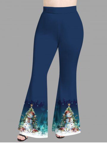 Bottoms > Plus Size Christmas Tree Snowflake Snowman Ombre Print Flare Pants