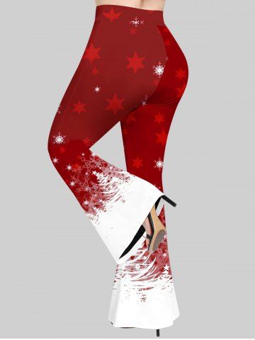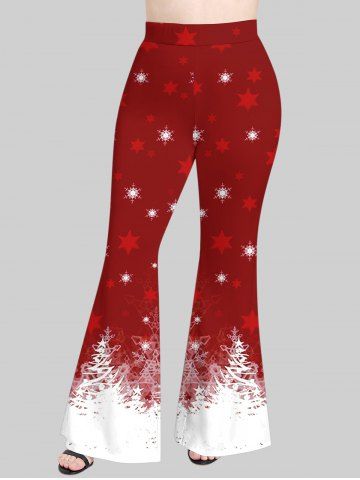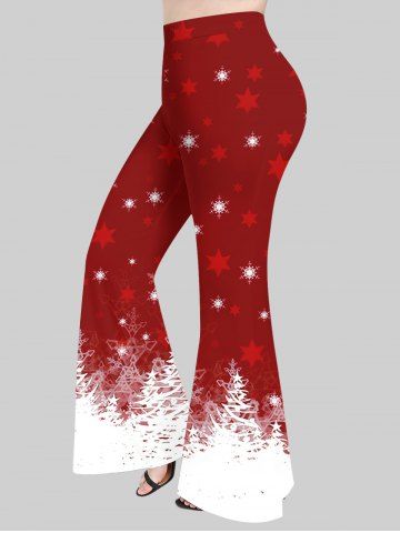 Plus Size Christmas Tree Snowflake Star Print Flare Pants - Red - Xs