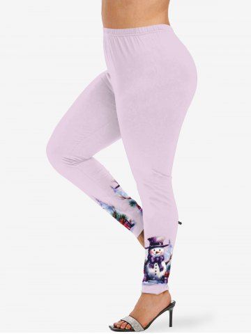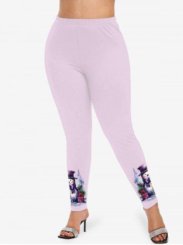 Plus Size Christmas Tree Snowman Gift Box Print Leggings - Light Purple - 1x