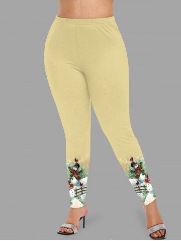 Plus Size Christmas Tree Snowman Snowflake Bird Print Leggings - Yellow - M
