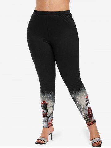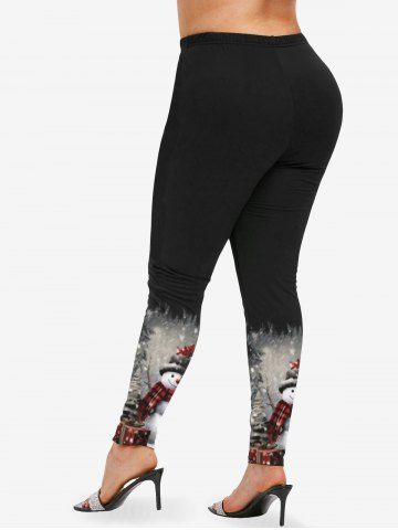 Plus Size Christmas Tree Snowman Snowflake Gift Box Print Leggings - Black - 4x