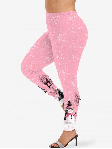 Plus Size Christmas Tree Snowman Snowflake Print Leggings - Light Pink - Xs