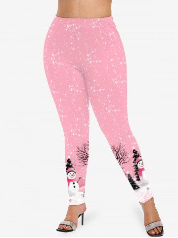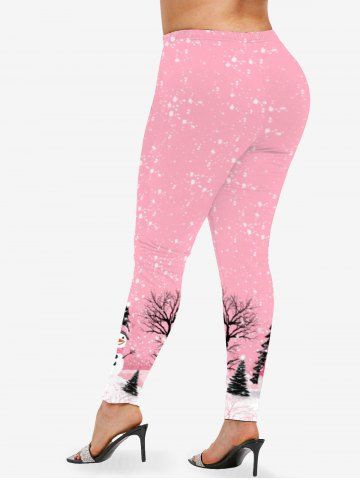 Plus Size Christmas Tree Snowman Snowflake Print Leggings - Light Pink - 4x