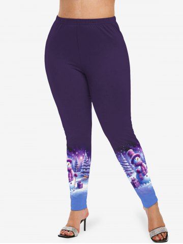 Plus Size Christmas Tree Snowman Snowflake Print Leggings - Purple - 2x